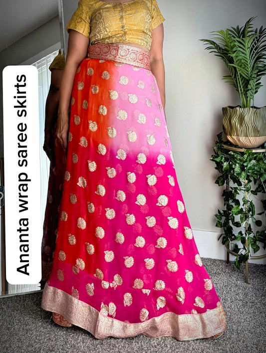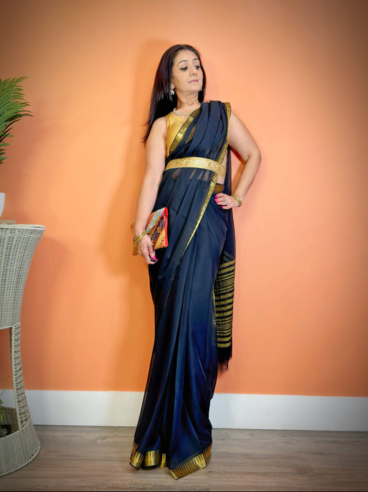 Ombre Shaded Pure Chiffon Saree with golden thread (zari) Border