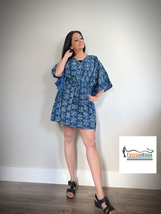 Boho Chic: Cotton Handblock Printed Kaftan (swim cover up)