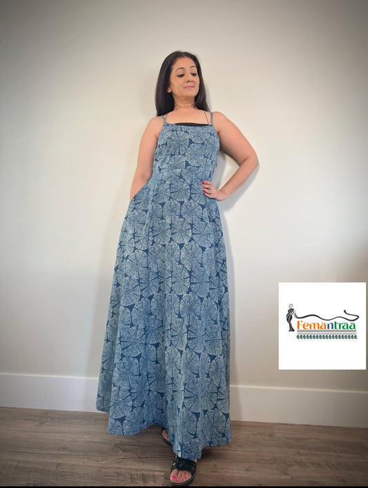 Boho chic : Cotton handblock printed fit n flare summer maxi dress