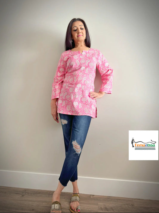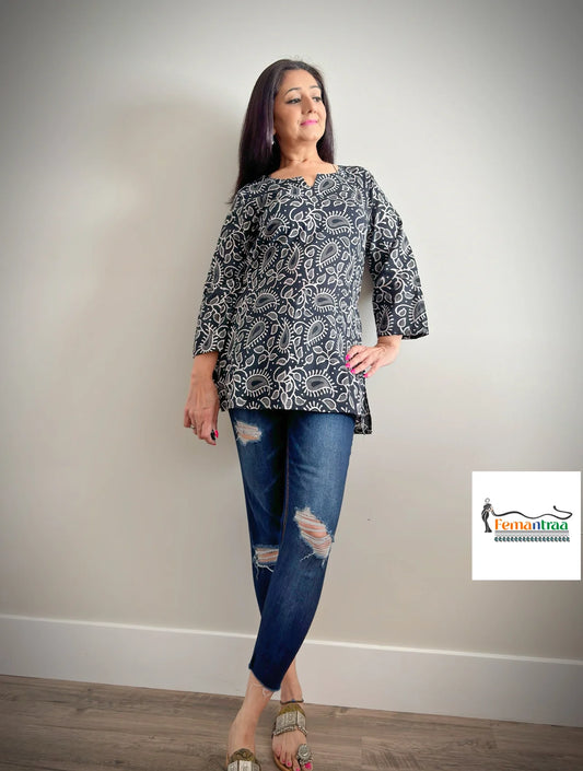 Boho Chic: Mulmul Cotton Handblock Print Short Tunic Kurtis