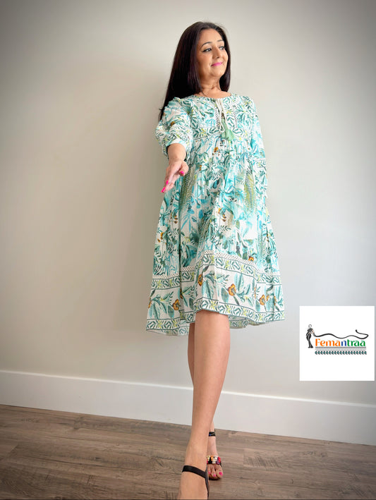 Boho chic: Cotton Handblock printed fit n flare summer short dress