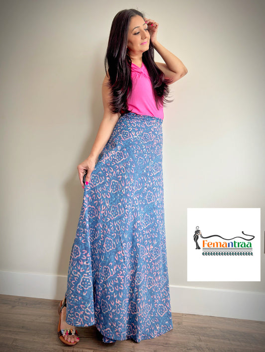 Bohemian Flair: Mulmul Cotton Handblock Wrap Around Flare Long Skirts