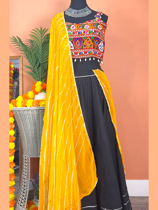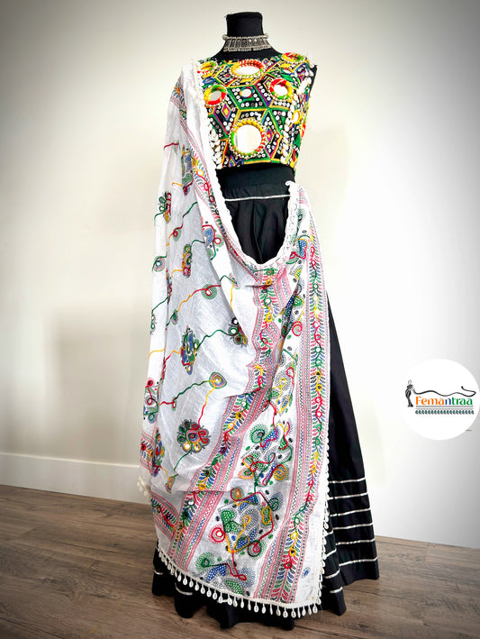 Black Chaniya with Kutch Mirror Work Choli & Kutchi Dupatta