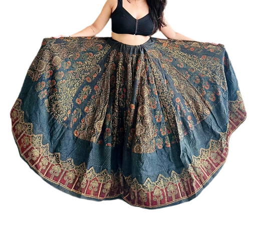 Long maxi Ghera Lehenga Skirts - Cotton Ajrakh handblock