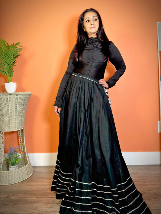 Effortless Chic: Plain Cotton Maxi Flare Black lehenga Skirt