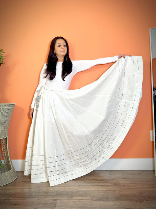 Plain Cotton Maxi Flare White lehenga Skirt: Effortless Style