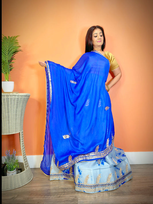 Elegant Blue Chinnon Silk Shibori Gota Patti Lehenga Set