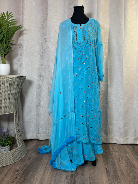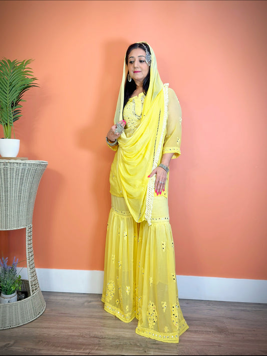 Mirror Embellished Chikankari Sharara Set: Elegant Style