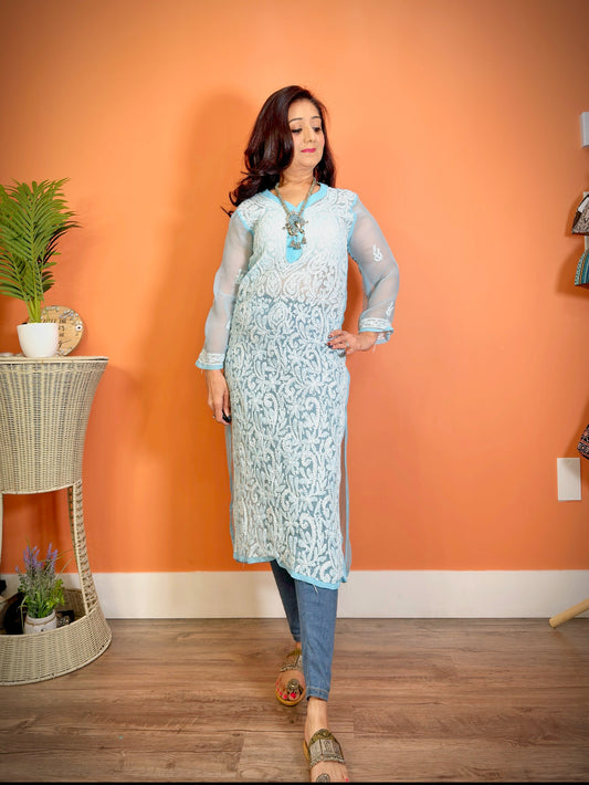 Lucknowi Chikankari Long Kurti (Tunic with slits)