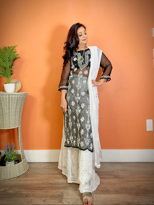 Mirror Embellished Chikankari Palazzo Set: Ethnic Elegance