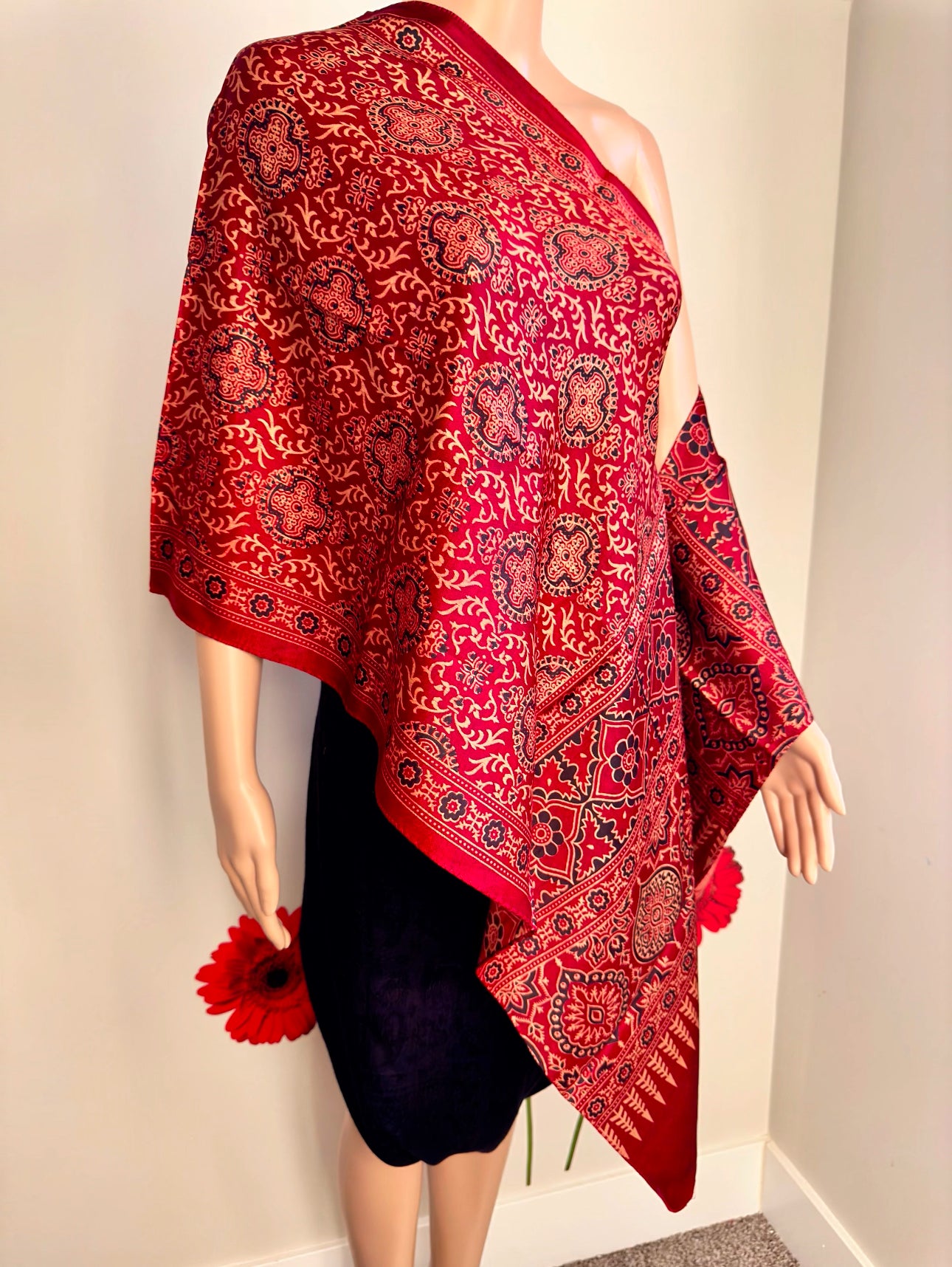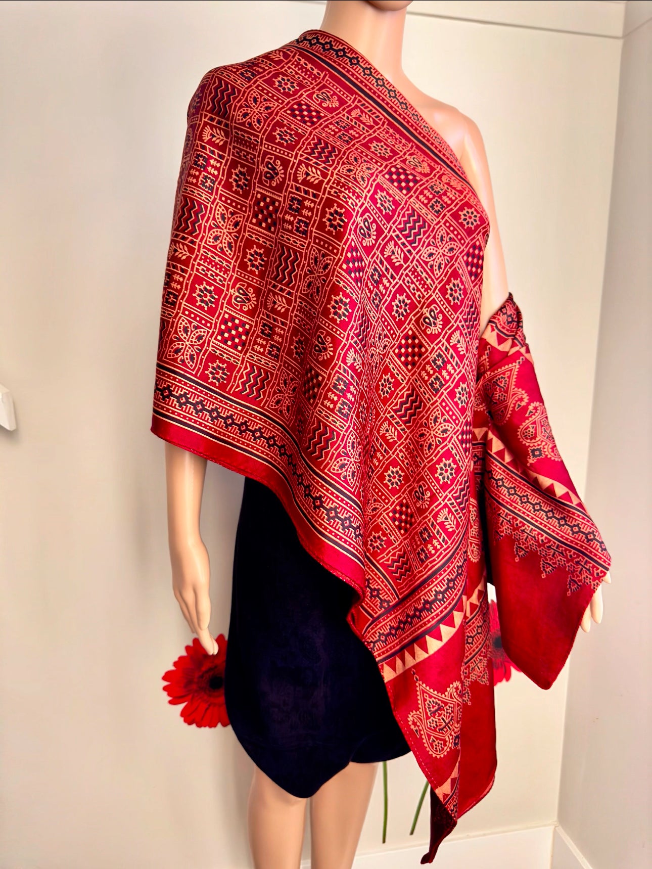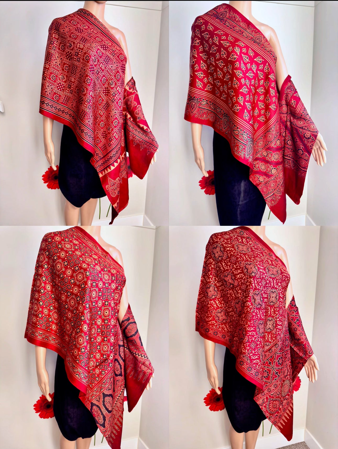 Ethnic Charm: Ajrakh Stoles (Red multi dye - 7 designs)