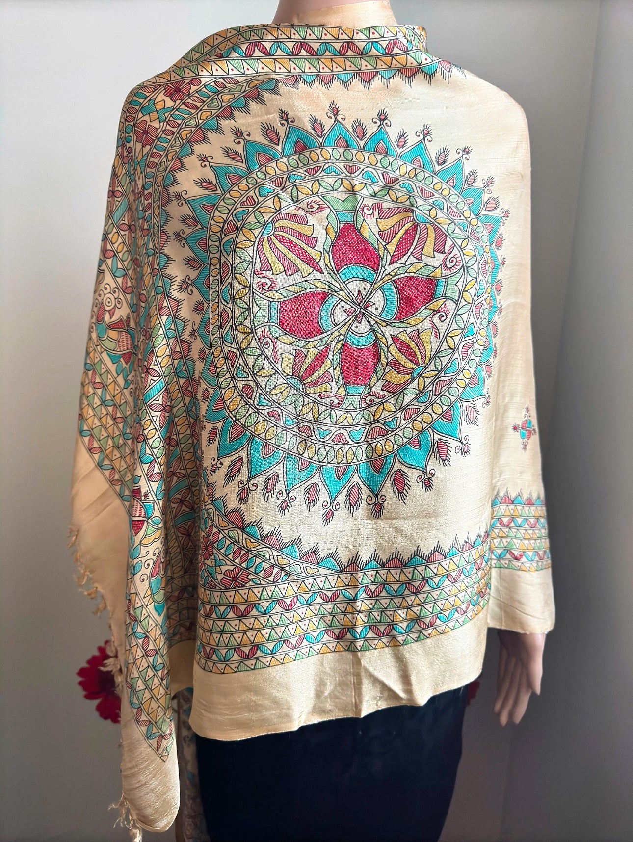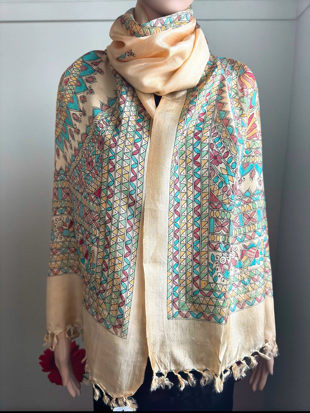 Boho Madhubani Ethnic Silk Scarf Stole: Artisanal Elegance